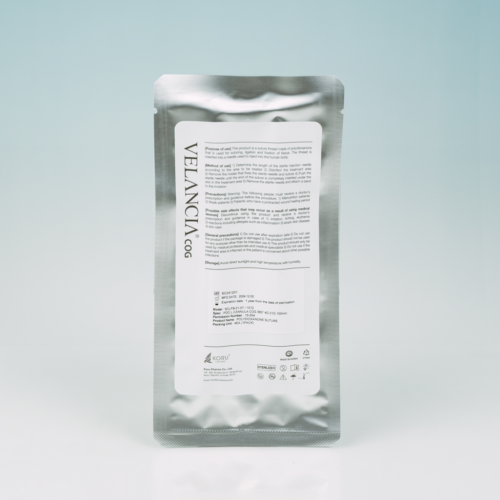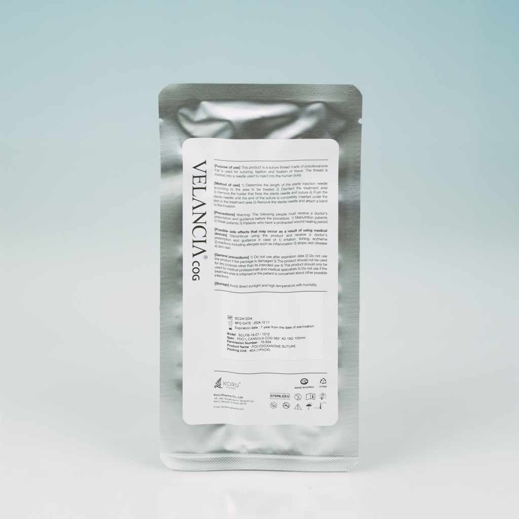 Velancia 360 4D COG (Cannula Cog) threads lift up sagged skin, stimulate collagen synthesis, form a new extensional carcass that is created taking into account anatomical peculiarities and points of fixation of soft tissues. Reinforcement by means of mesothreads Velancia 360 4D COG (Cannula Cog) ensures a lasting effect for 1,5 – 2 years.
